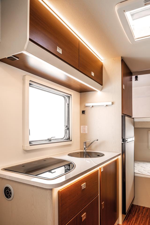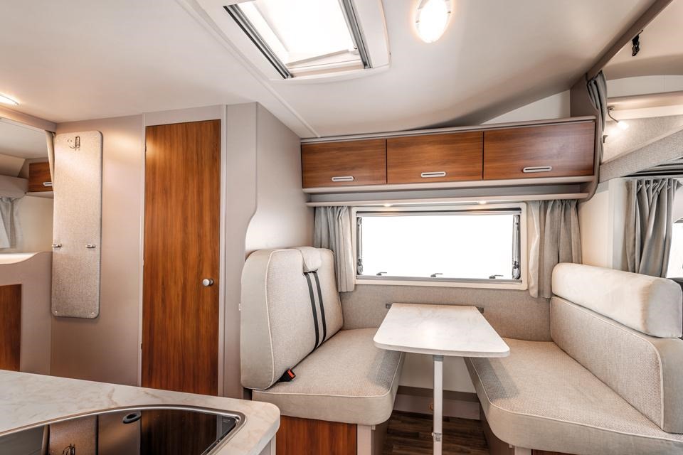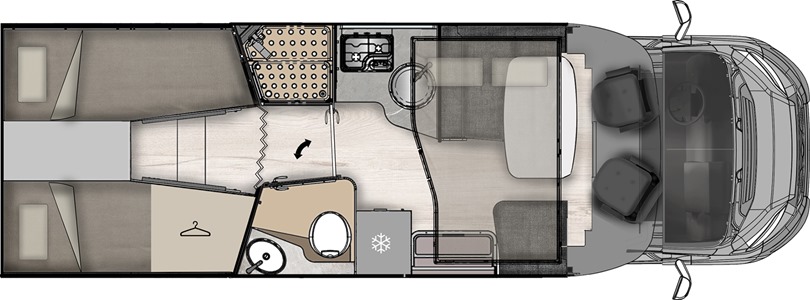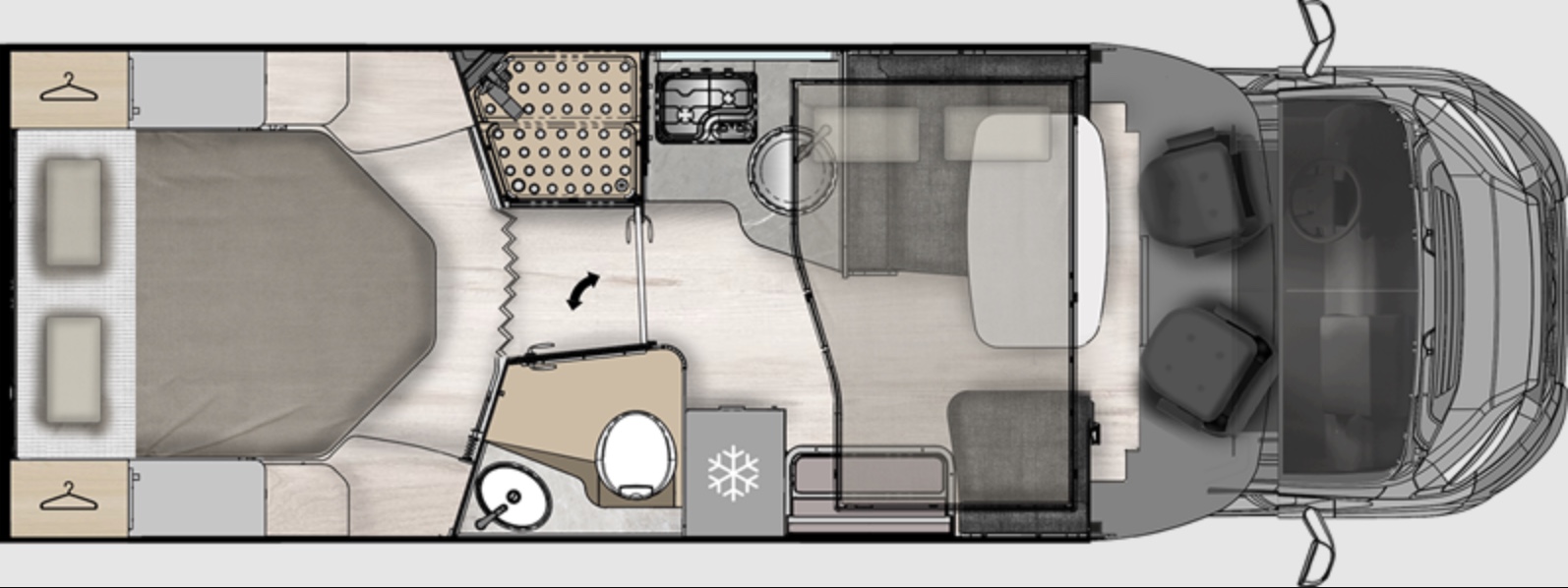 Es de los vehículos más compactos con tan solo 6.5 metros y con el espacio interior mejor aprovechado, ideal para parejas con su cama de matrimonio fija e independiente, para hacer grandes rutas románticas de esas que cuentas y no se olvidan.