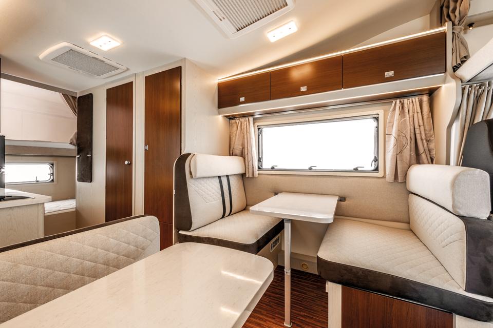 - Tipo de cama: Cama fija trasera, Cama fija sobre cabina y Cama convertible de matrimonio en comedor